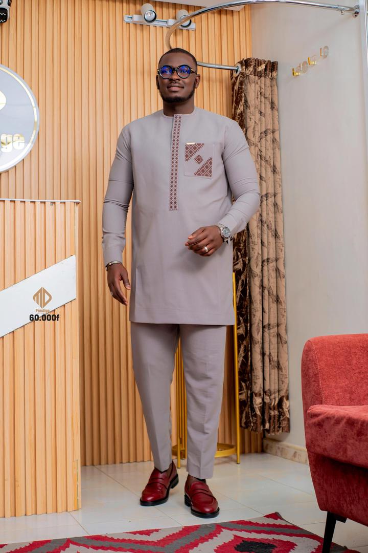 Le Costume Africain 2 Pièces Gris Clair Élégant (#BFBBC7) allie tradition africaine et style moderne. Sa couleur douce et lumineuse apporte sobriété et élégance, tout en restant facile à porter.