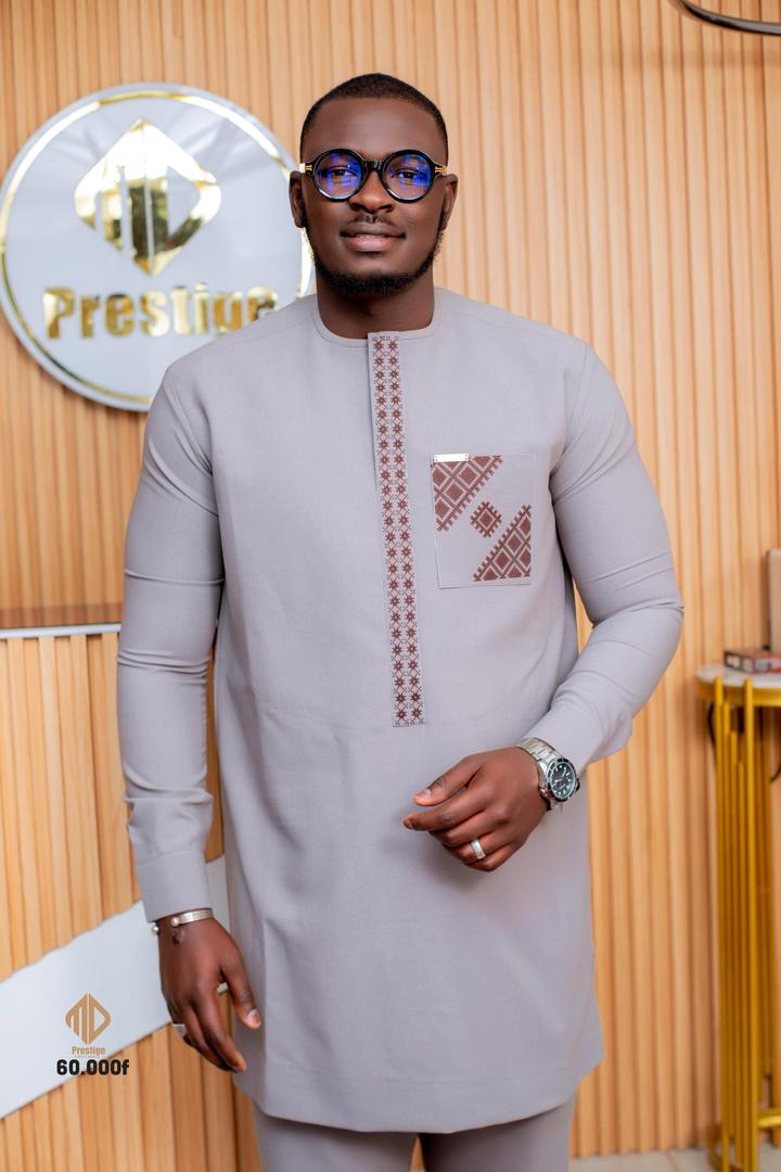 La coupe est confortable et pratique, parfaite pour ceux qui souhaitent une tenue traditionnelle simple mais chic, idéale pour mariages, cérémonies ou événements prestigieux.