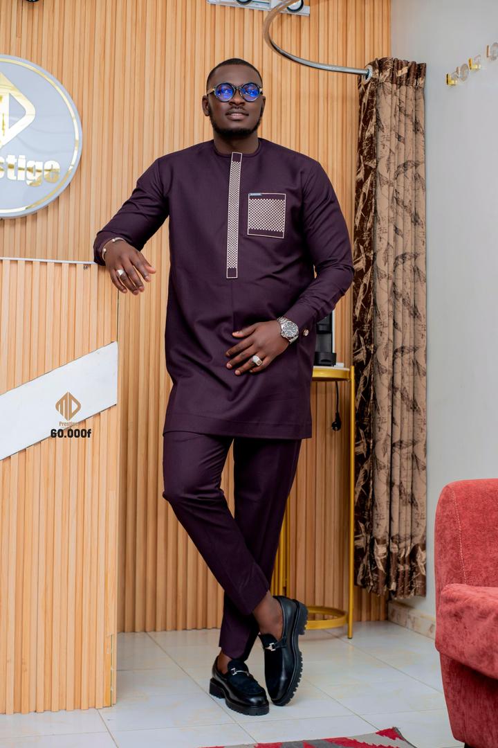 Le Costume Africain 2 Pièces Violet Élégant (#573B53) combine tradition africaine et style moderne. Sa teinte profonde apporte distinction et sobriété, tout en restant élégante et facile à porter.