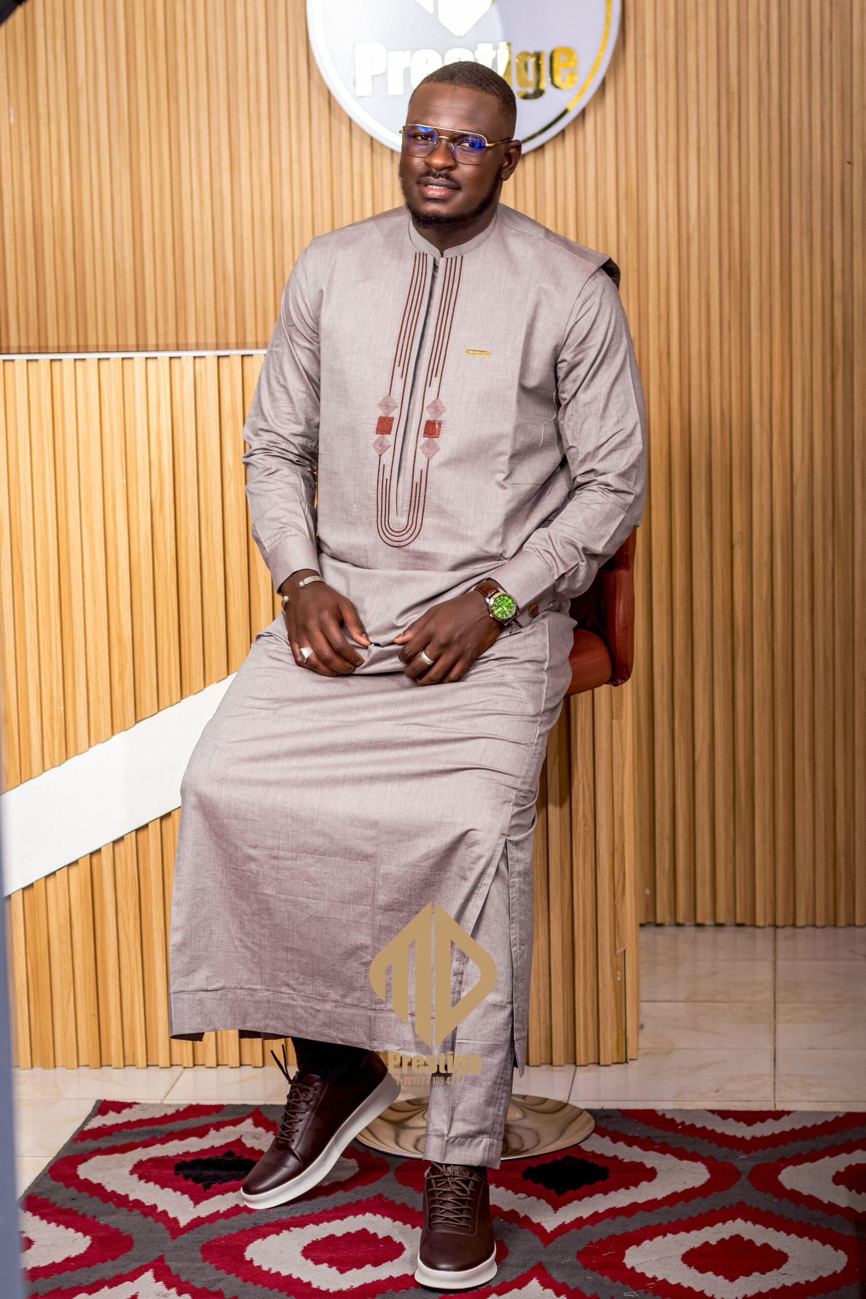 Les détails subtils de la coupe Diomaye et les finitions soignées donnent à cette tenue un look haut de gamme et moderne, idéal pour mariages, cérémonies religieuses, fêtes traditionnelles et événements élégants.